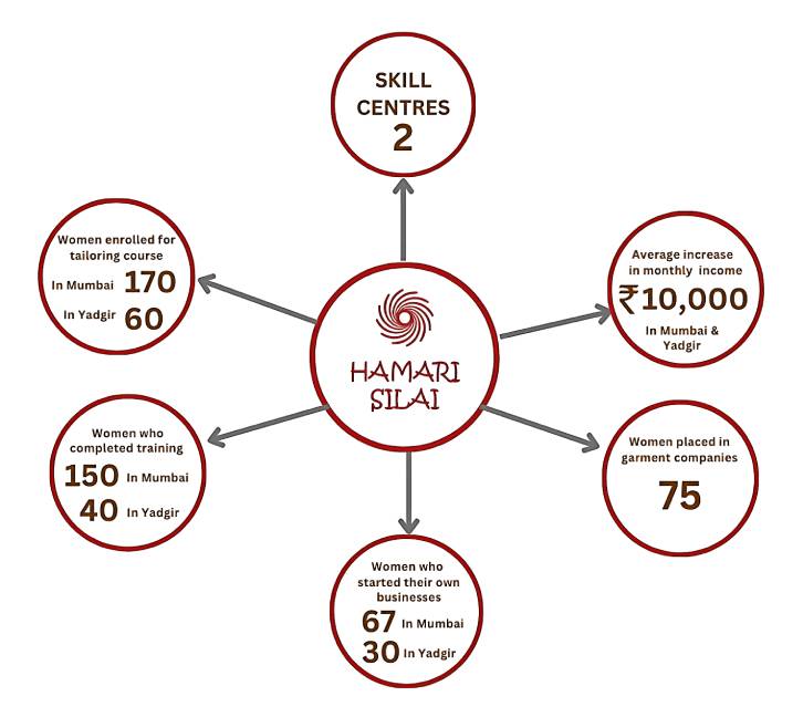 Hamari Silai Foundation (HSF) is a non-profit organisation registered under the B.P.T Act of 1950. Conceived in response to the many hardships we, the founders of Hamari Silai, witnessed our mothers experiencing through our childhood, Hamari Silai is aimed at lifing women out of poverty and, thereby, catalysing change in low income communities.